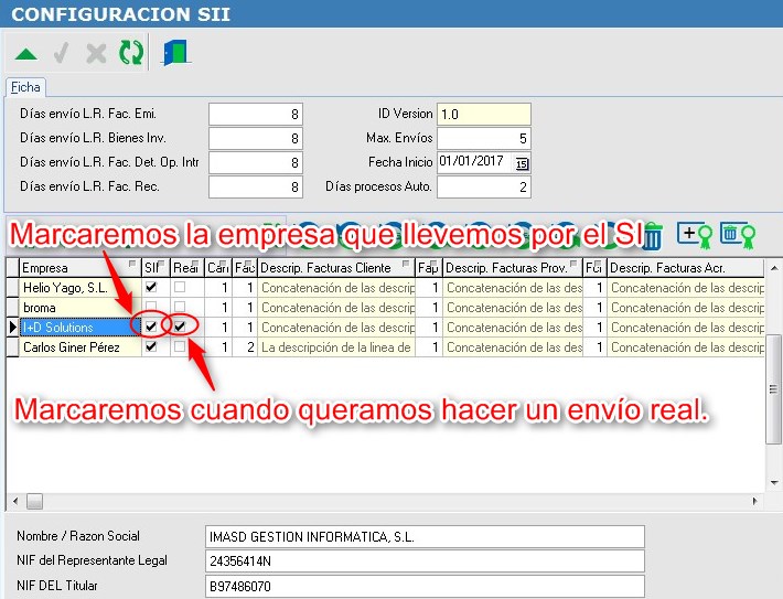 | Fecha inicio | Fecha Inicio del SII, inicialmente se pondrá el 01/07/2017. |